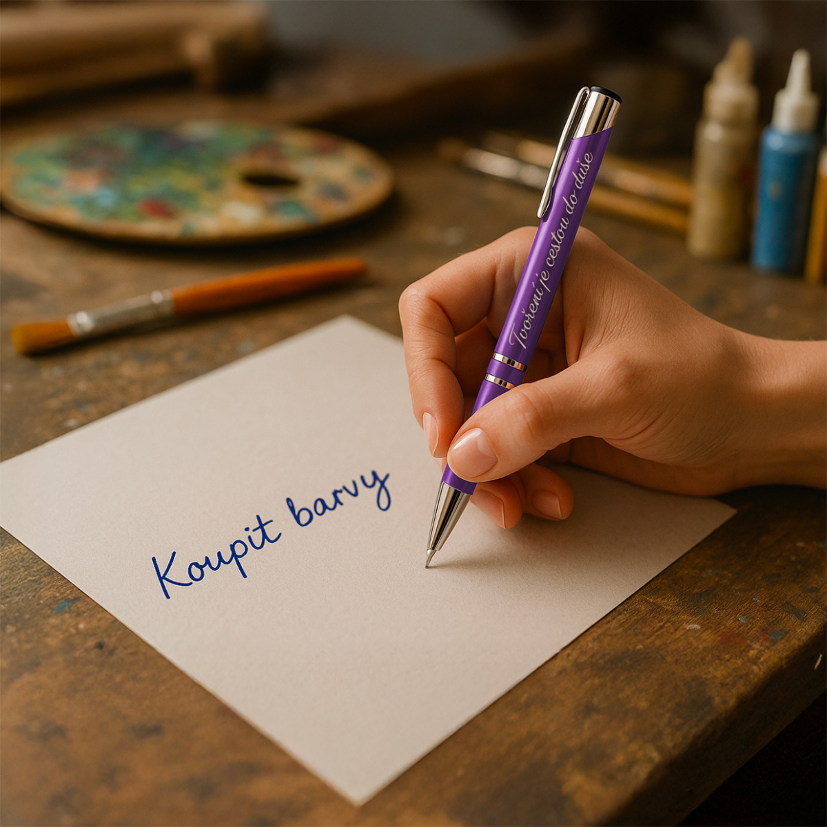 Na výběr máte z mnoha krásných barev a každý kousek pro vás s láskou přizpůsobíme gravírováním loga nebo osobního textu. Díky tomu se i obyčejné pero promění v originální dárek, který má příběh.