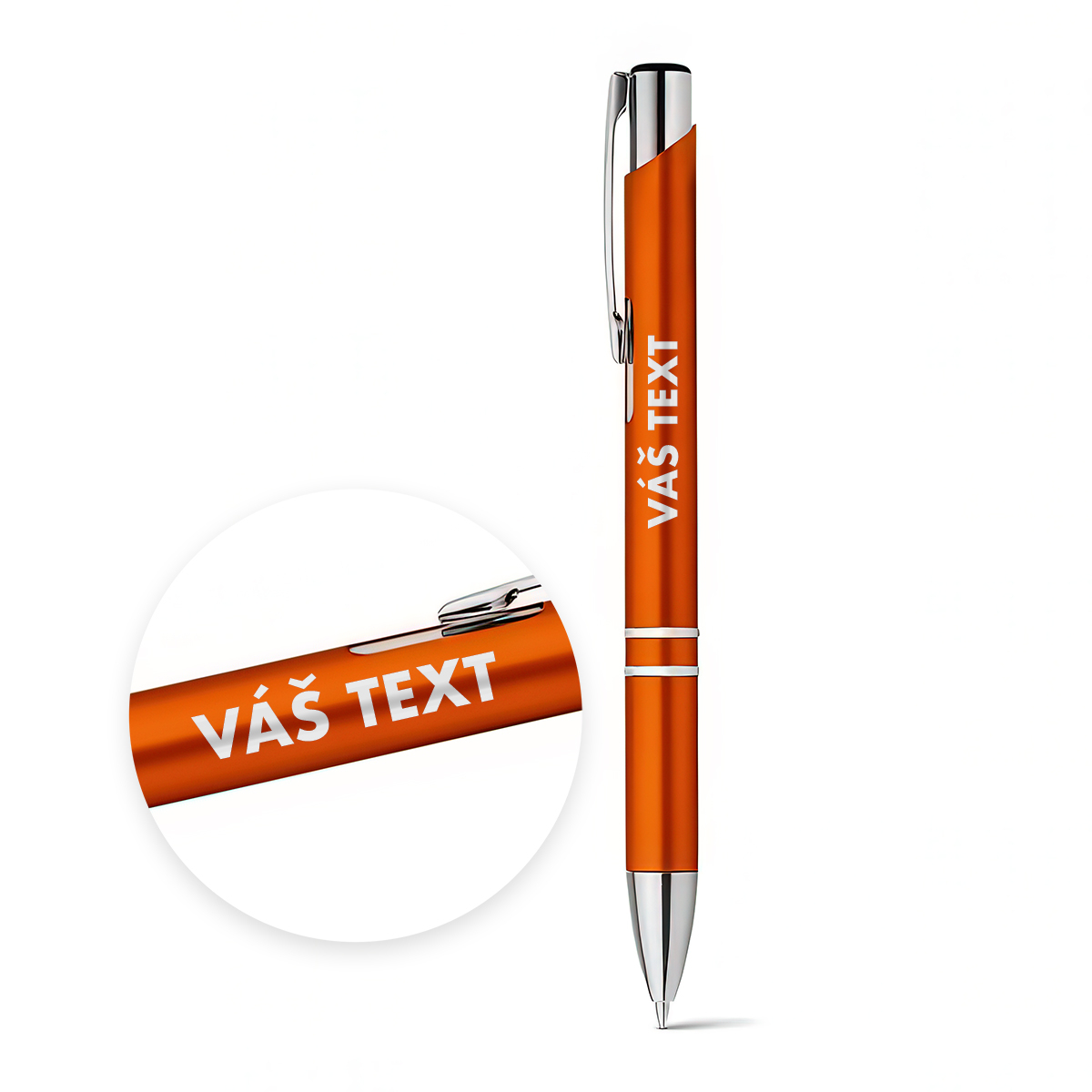 Propiska s kovovou sponou, modrý inkoust - oranžová cena vč. gravírování