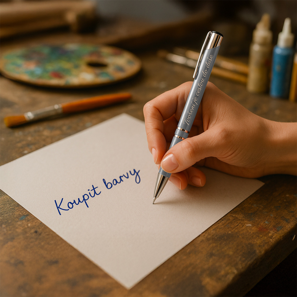 Na výběr máte z mnoha krásných barev a každý kousek pro vás s láskou přizpůsobíme gravírováním loga nebo osobního textu. Díky tomu se i obyčejné pero promění v originální dárek, který má příběh.