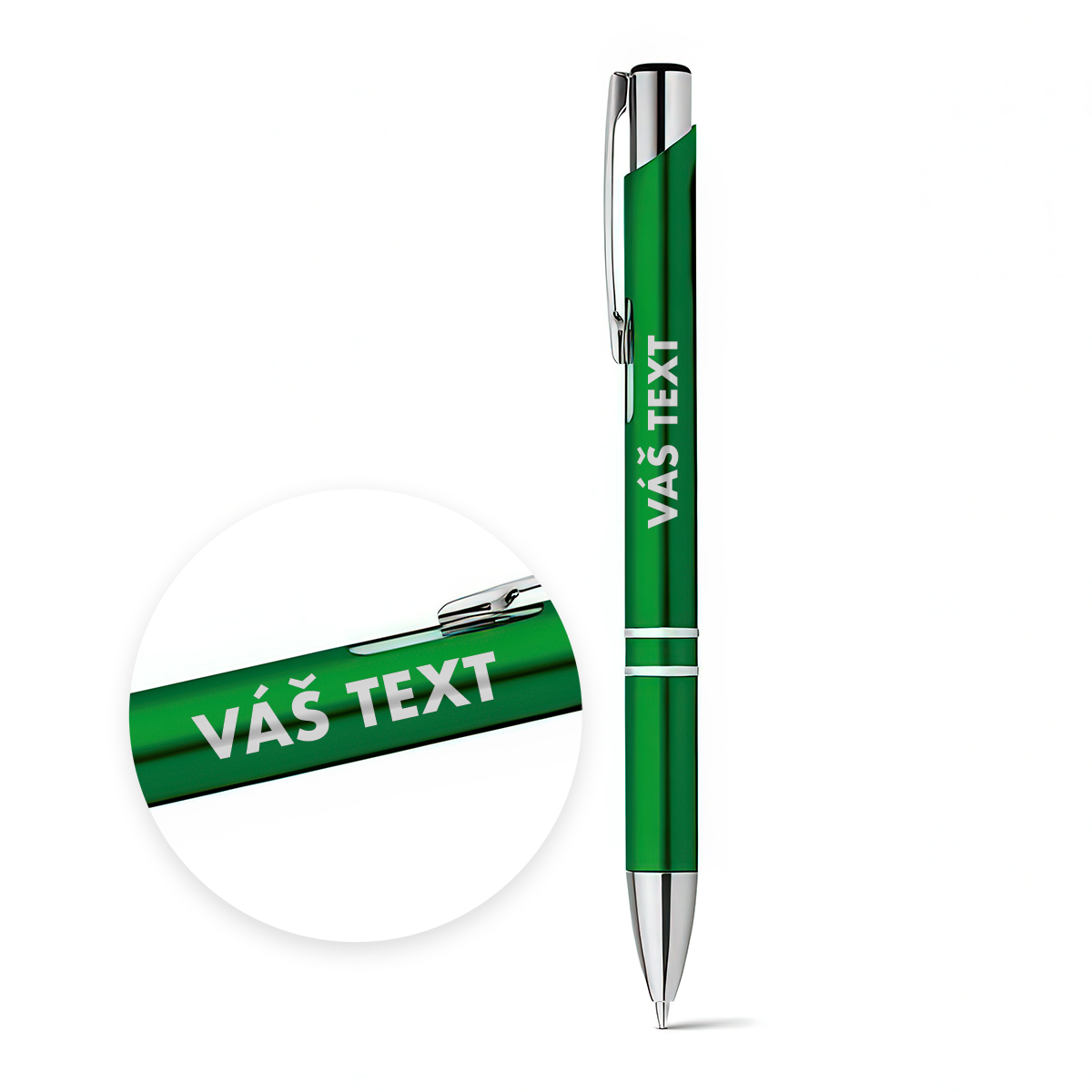 Propiska s kovovou sponou, modrý inkoust - zelená cena vč. gravírování