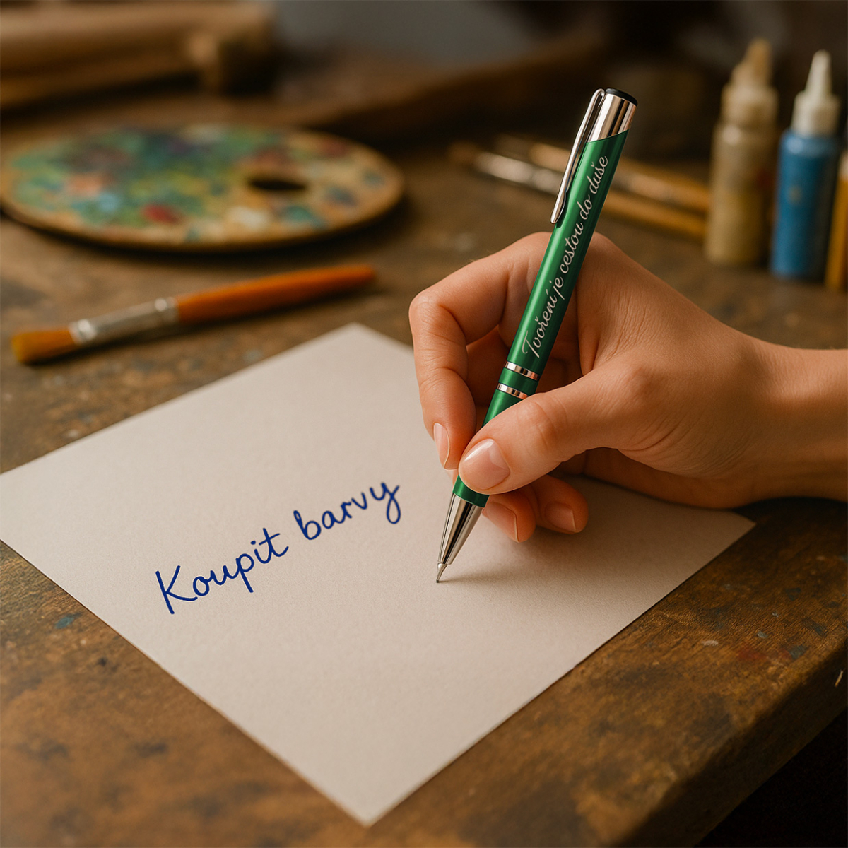 Na výběr máte z mnoha krásných barev a každý kousek pro vás s láskou přizpůsobíme gravírováním loga nebo osobního textu. Díky tomu se i obyčejné pero promění v originální dárek, který má příběh.