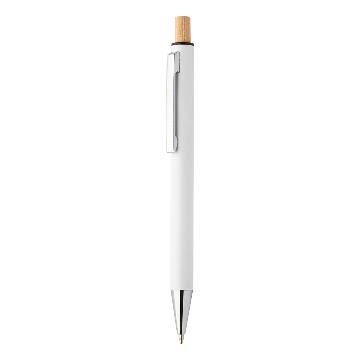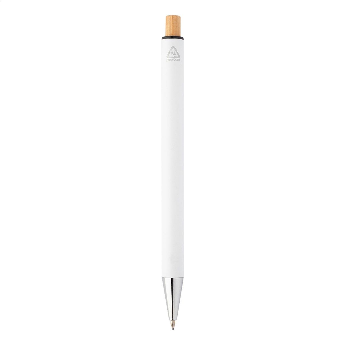 Sada pera z recyklovaného hliníku s kuličkovým perem a mechanickou tužkou s bambusovými knoflíky. S modrou náplní a 0,7 mm tuhy. V kraftové papírové krabici.