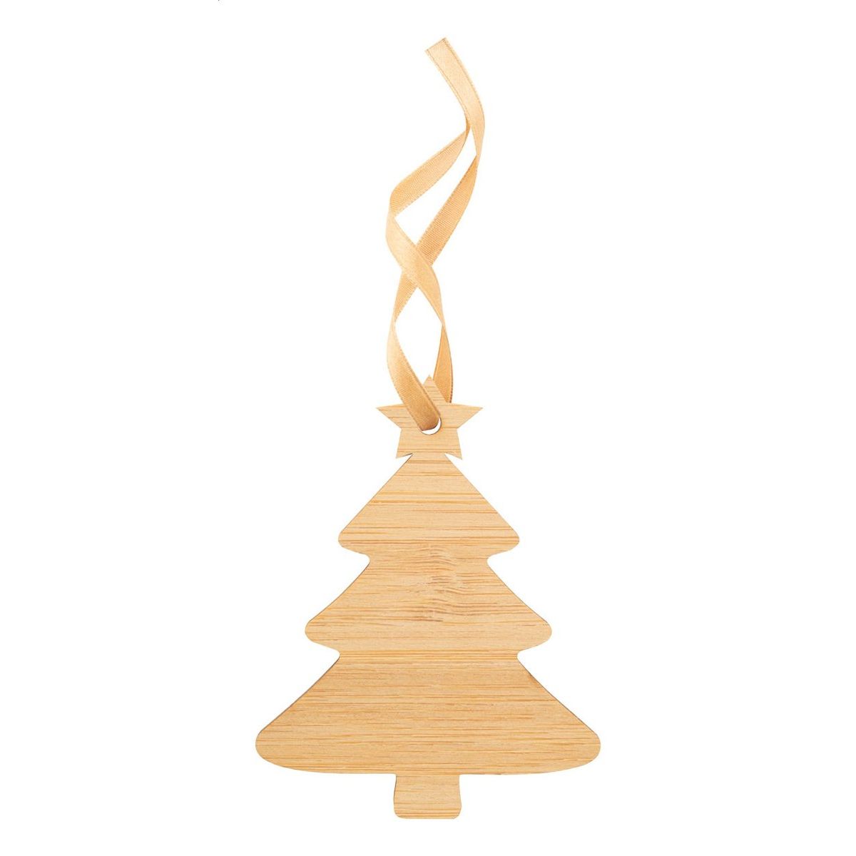 Vánoční přání v bambusové překližce s vylamovací ozdobou na vánoční stromeček se zlatou stuhou. Včetně poštovní obálky C6. Dodáváno s oddělenou stuhou.