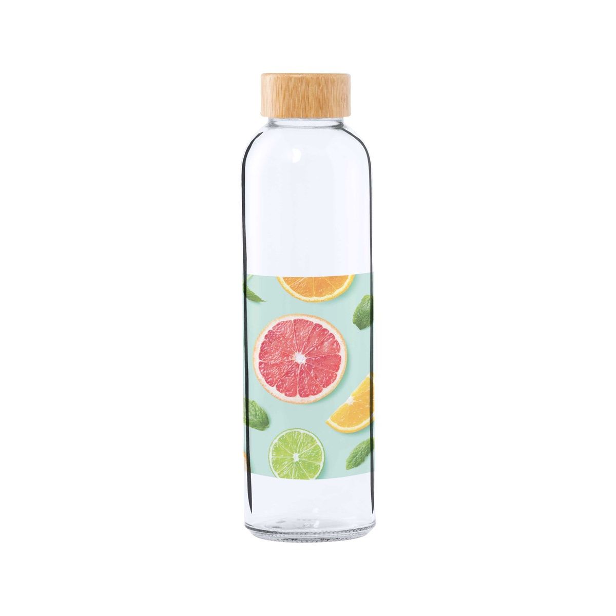 Skleněná láhev s bambusovým víčkem, 500 ml. Nevhodné pro sycené nápoje.