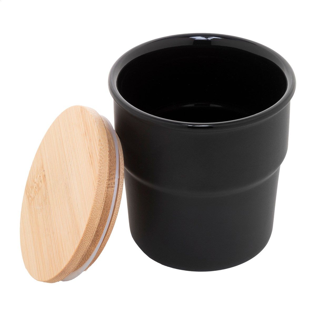 Vysoce kvalitní keramický hrnek s bambusovým víčkem. S matnou vnější a lesklou vnitřní povrchovou úpravou. 240 ml. V kraftové papírové krabici.