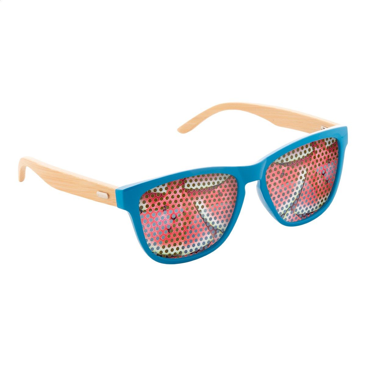 Sluneční brýle s barevnými plastovými obroučkami a bambusovými nožičkami. S ochranou UV 400.