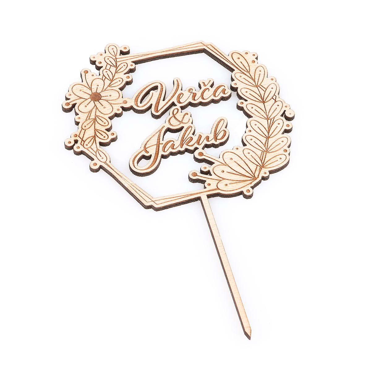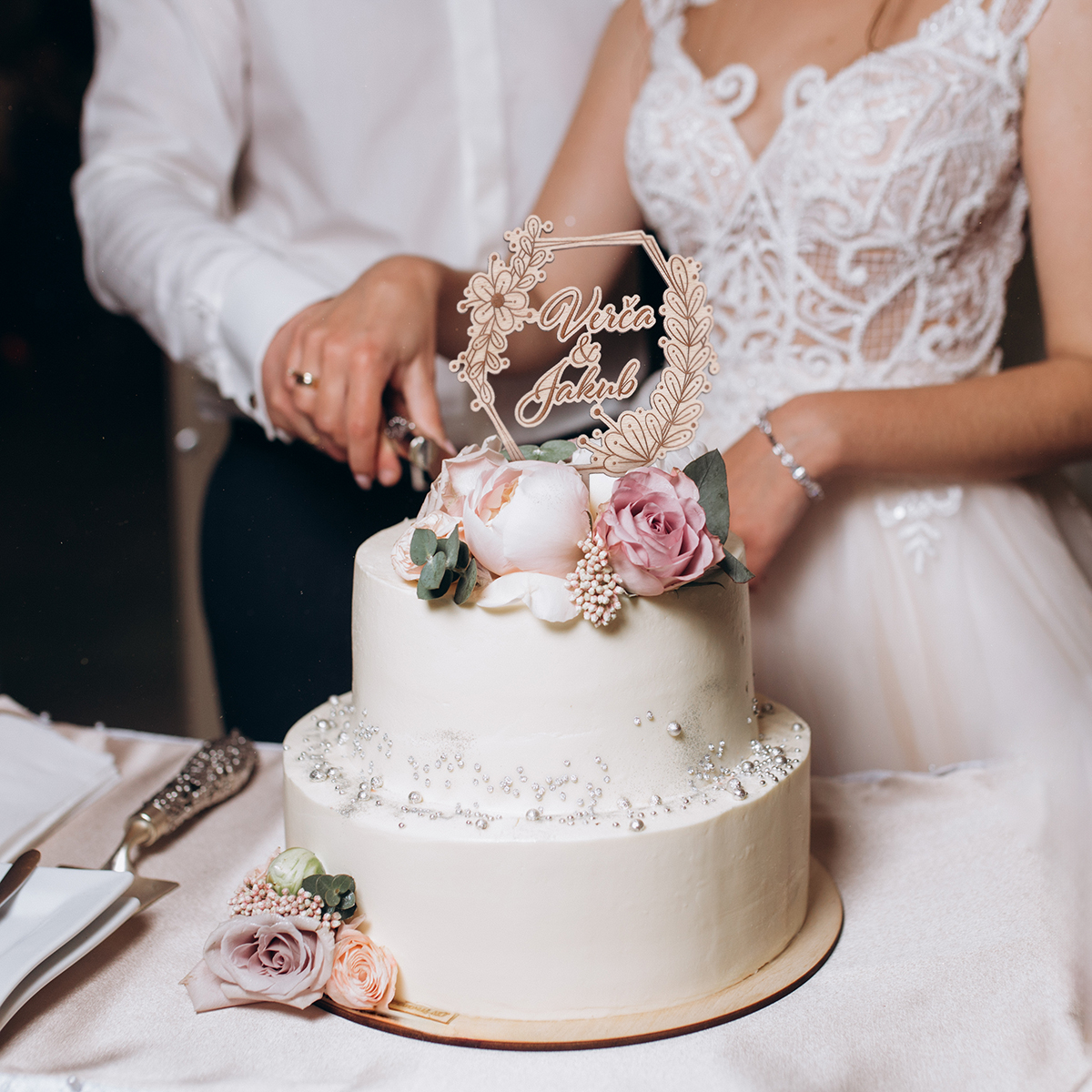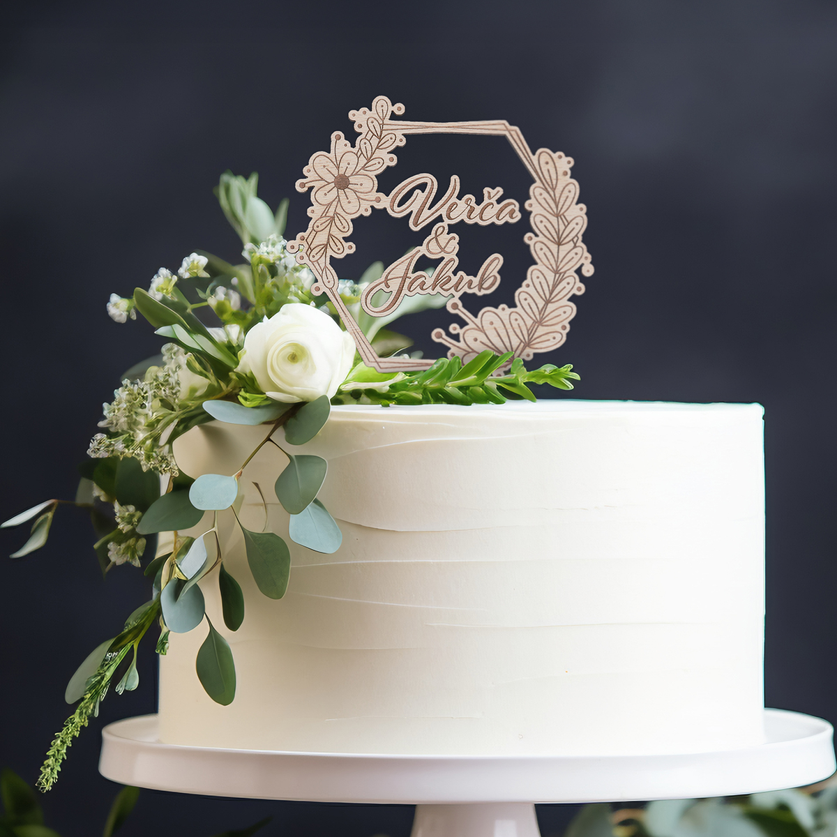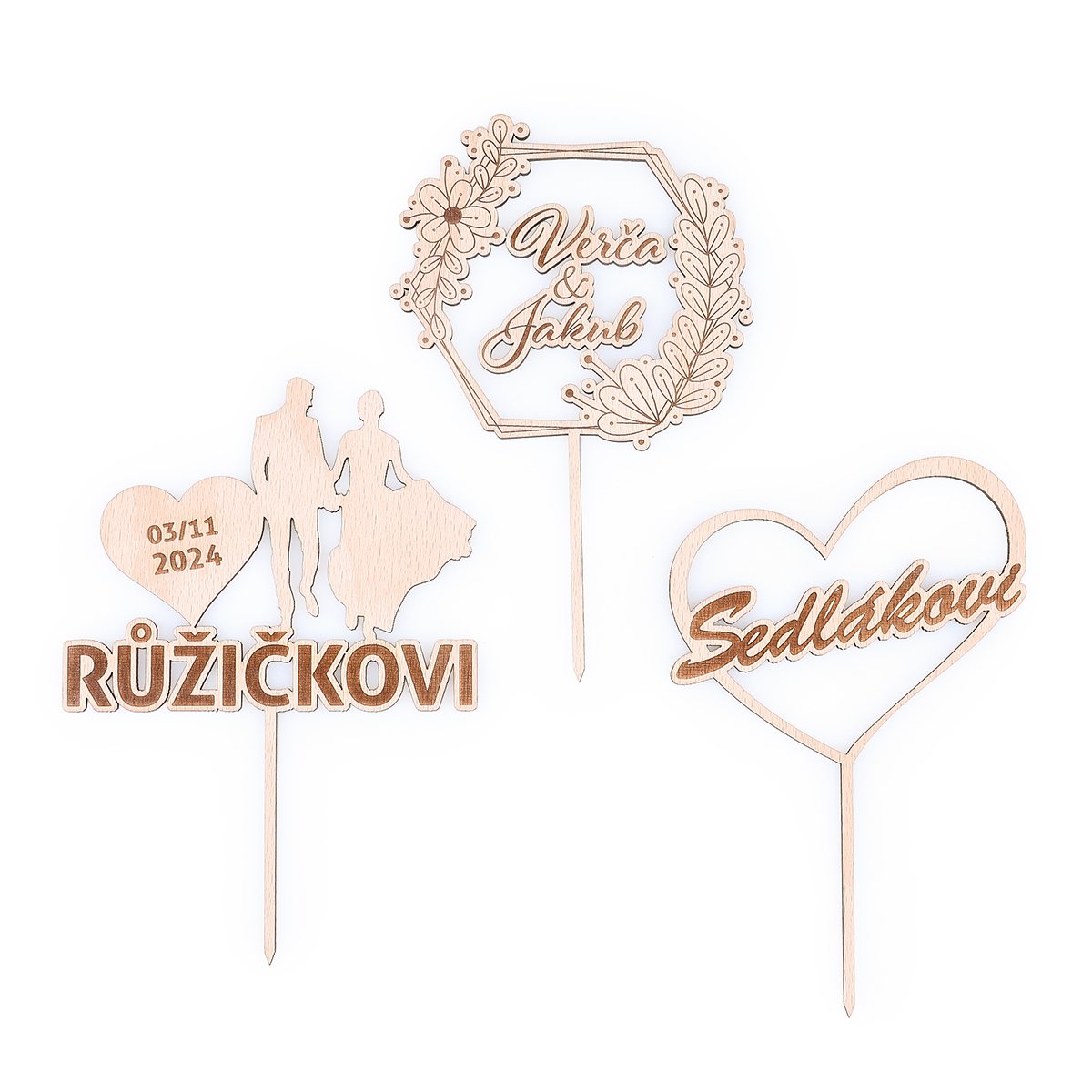 Elegantní doplněk svatebního dortu z přírodní bukové překližky