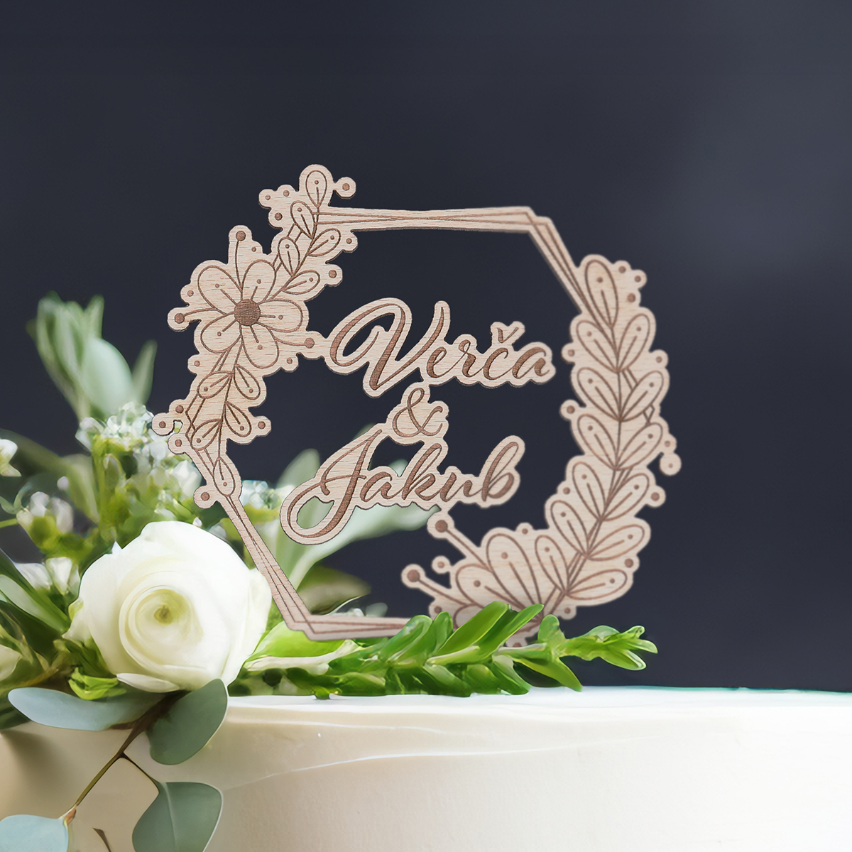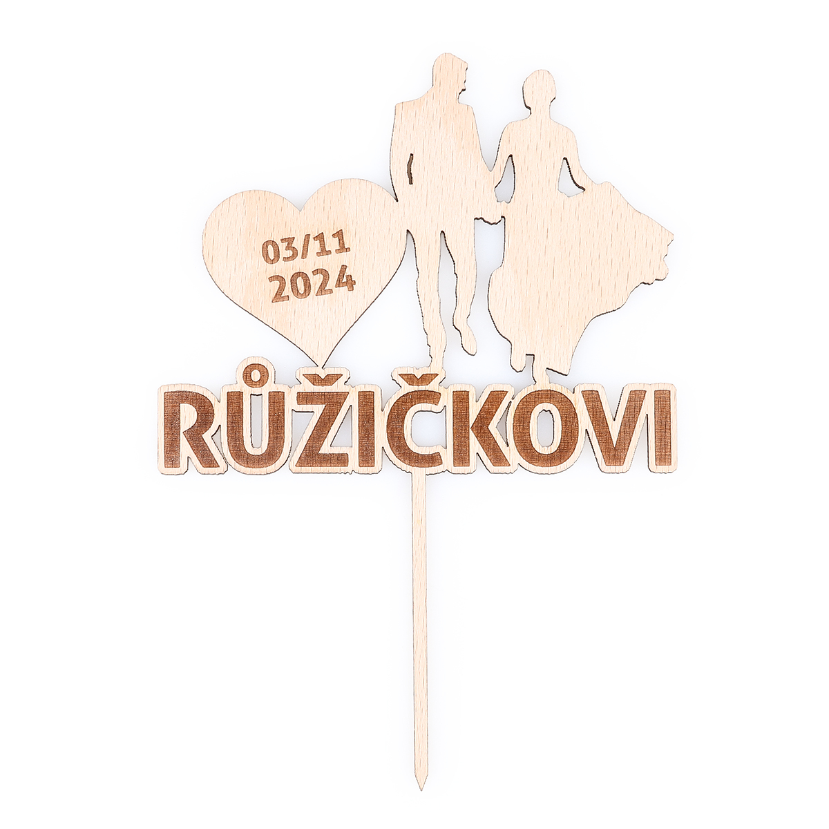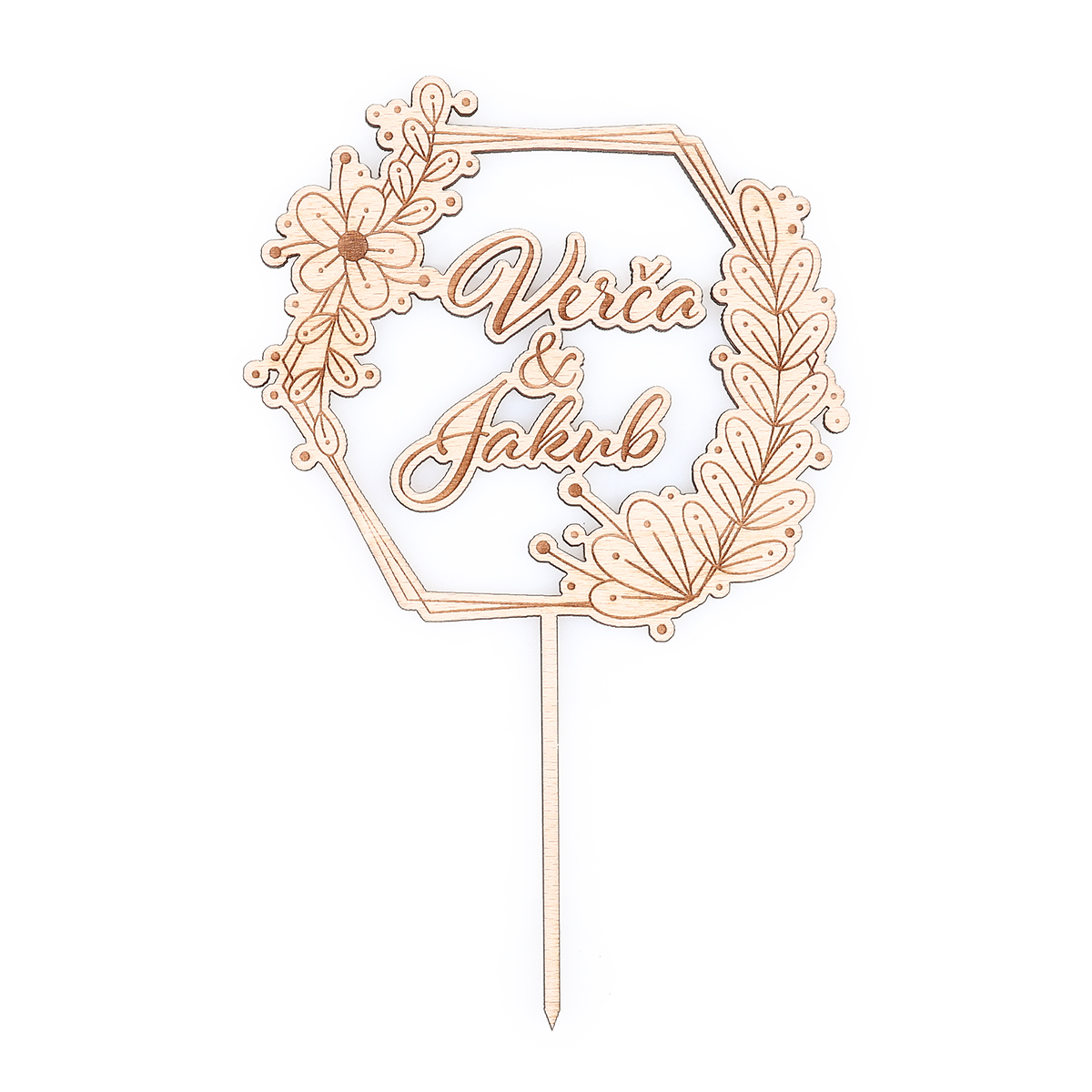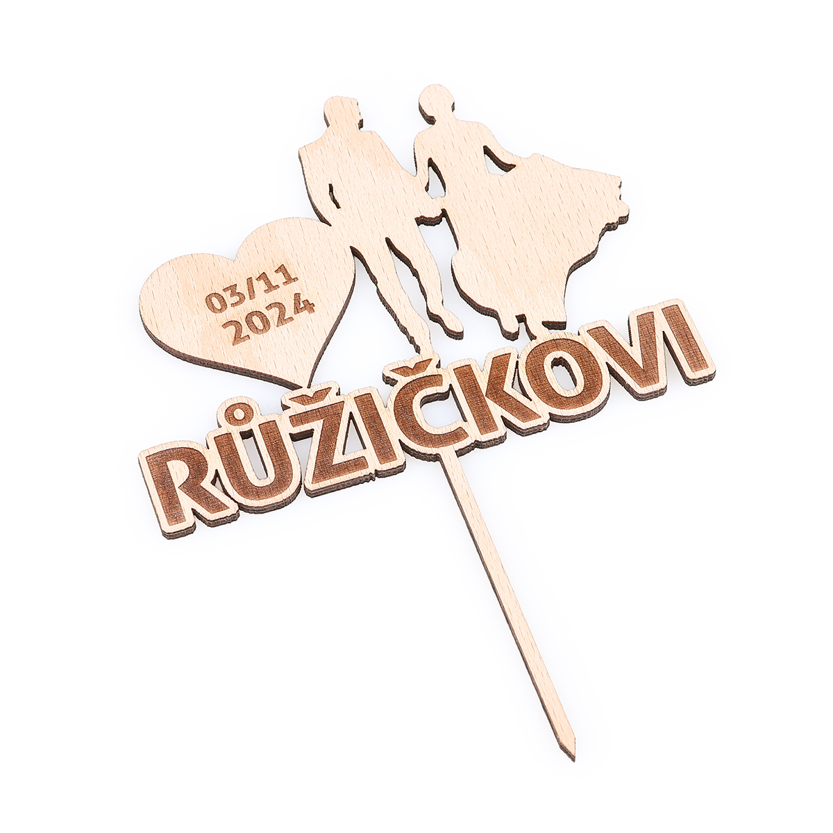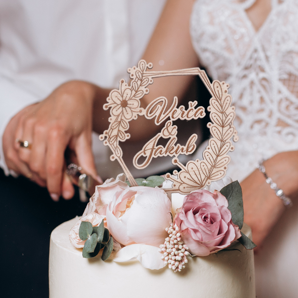 Elegantní doplněk svatebního dortu z přírodní bukové překližky