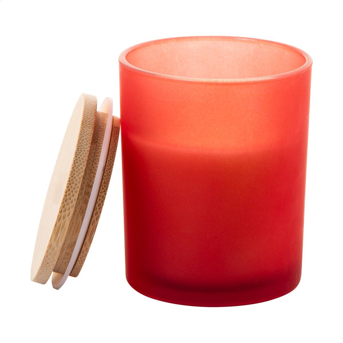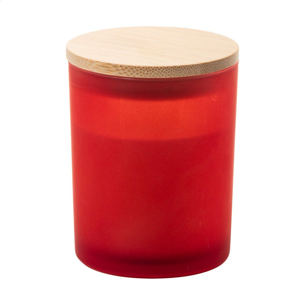 Vosková svíčka na rostlinné bázi v matné skleničce s bambusovým víčkem. Se 120 gramy vosku. V kraftové papírové krabici.