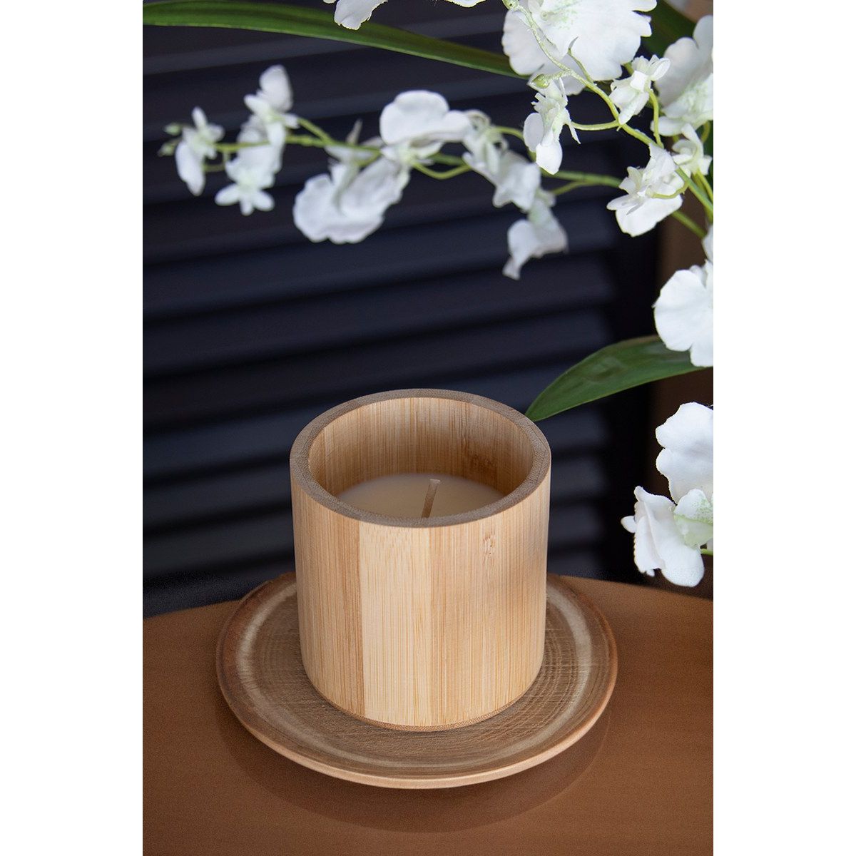 Rostlinná vosková svíčka s vůní vanilky v bambusovém držáku. Se 160 gramy vosku. V kraftové papírové krabici.