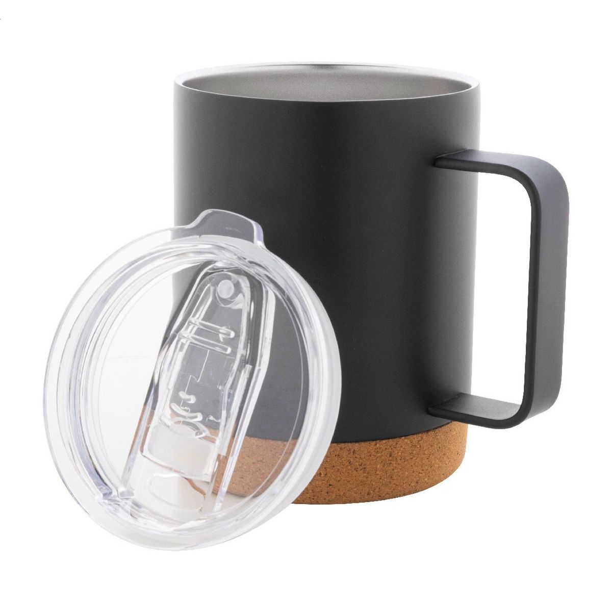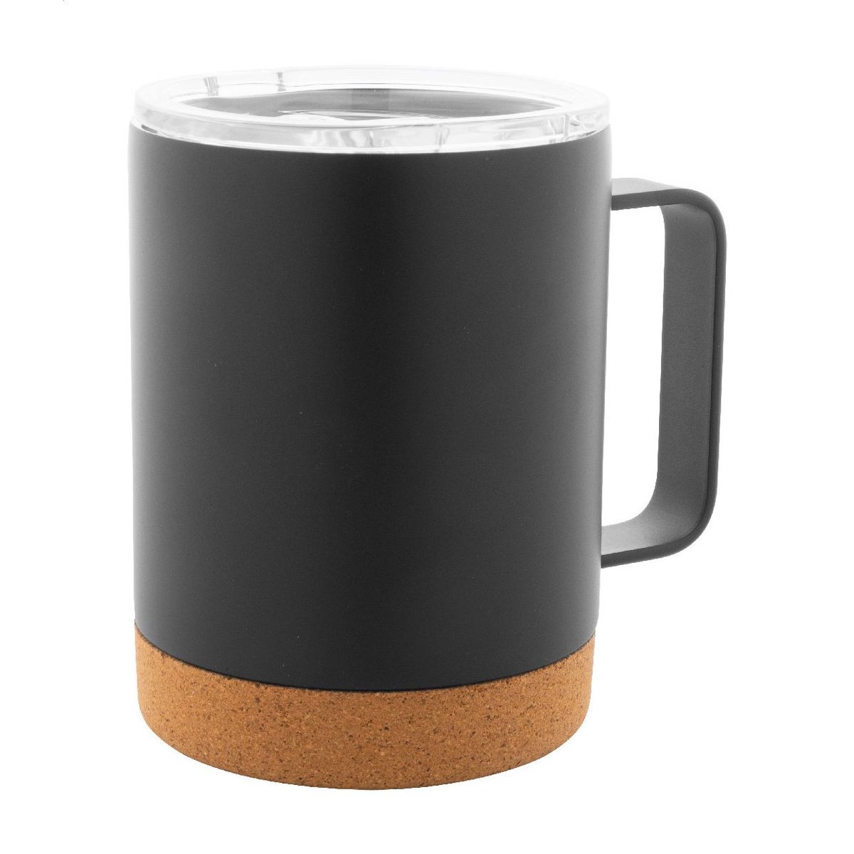 Dvoustěnný nerezový termohrnek s víčkem na pití a dnem z přírodního korku, 330 ml. V kraftové papírové krabici.