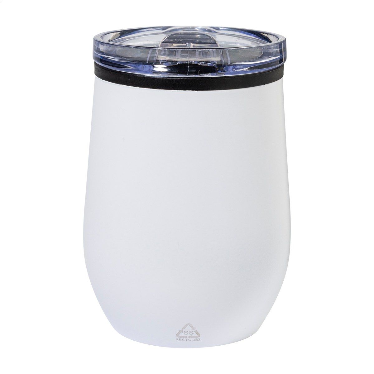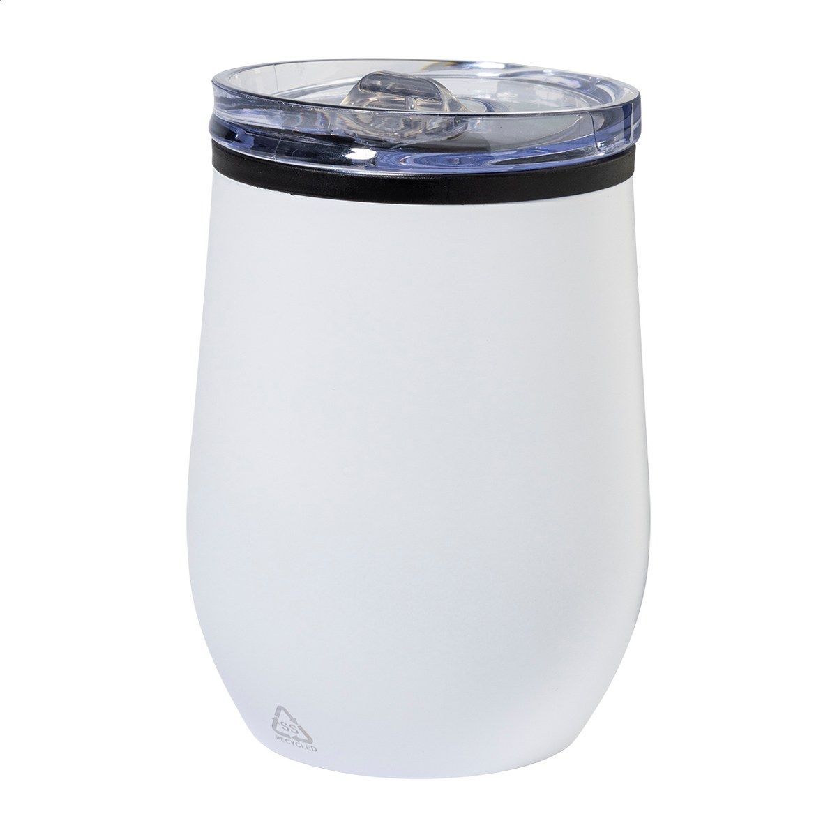 Dvoustěnný termo hrnek z recyklované nerezové oceli s vnitřní stranou z PP a víčkem z PS. 350 ml.