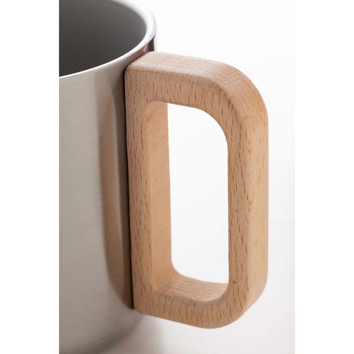 Dvoustěnný termo hrnek z recyklované nerezové oceli s dřevěným uchem. 350 ml.
