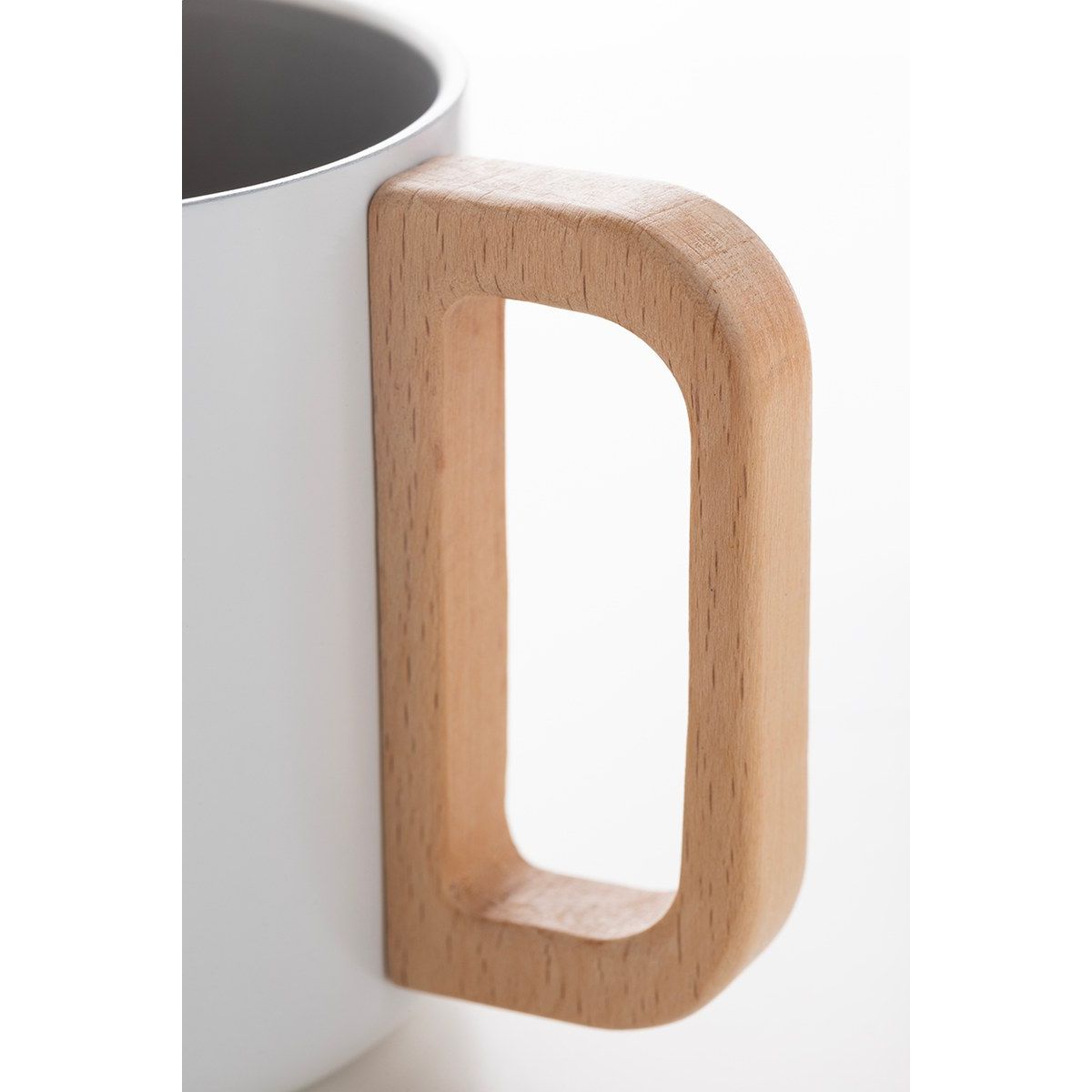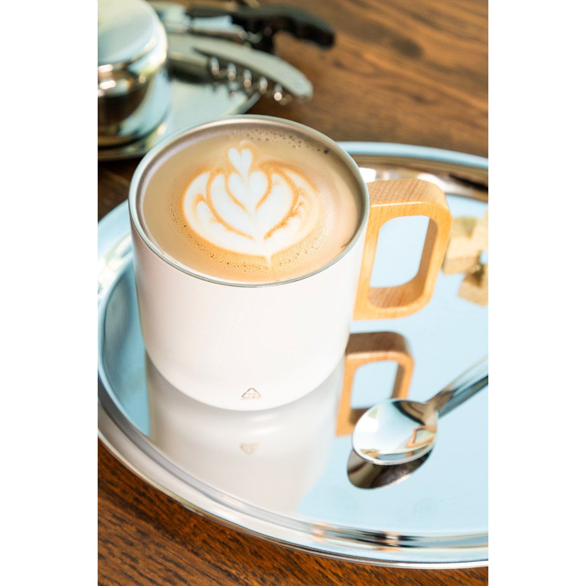 Dvoustěnný termo hrnek z recyklované nerezové oceli s dřevěným uchem. 350 ml.