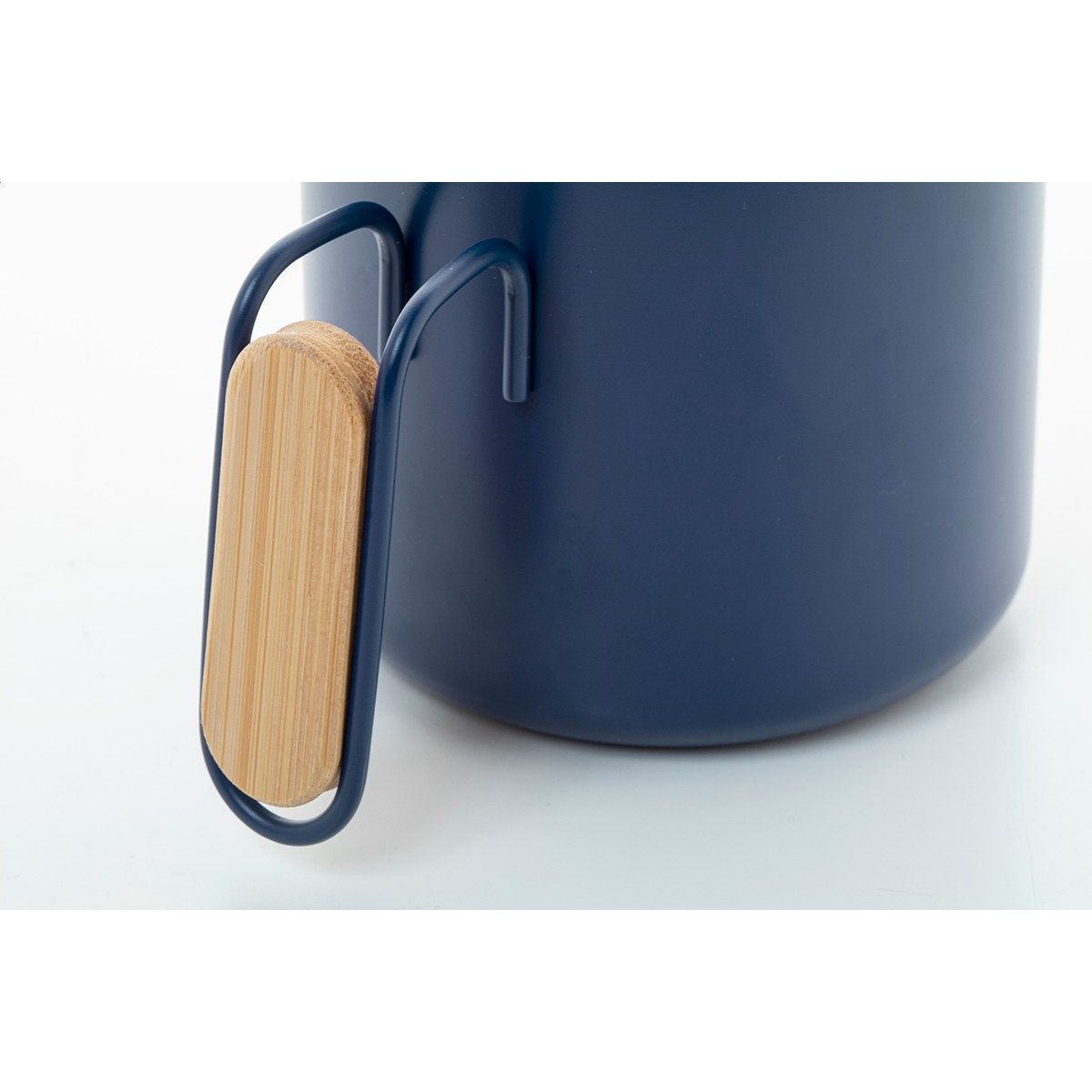 Dvoustěnný termo hrnek z recyklované nerezové oceli s bambusovým víčkem a rukojetí. 300 ml.