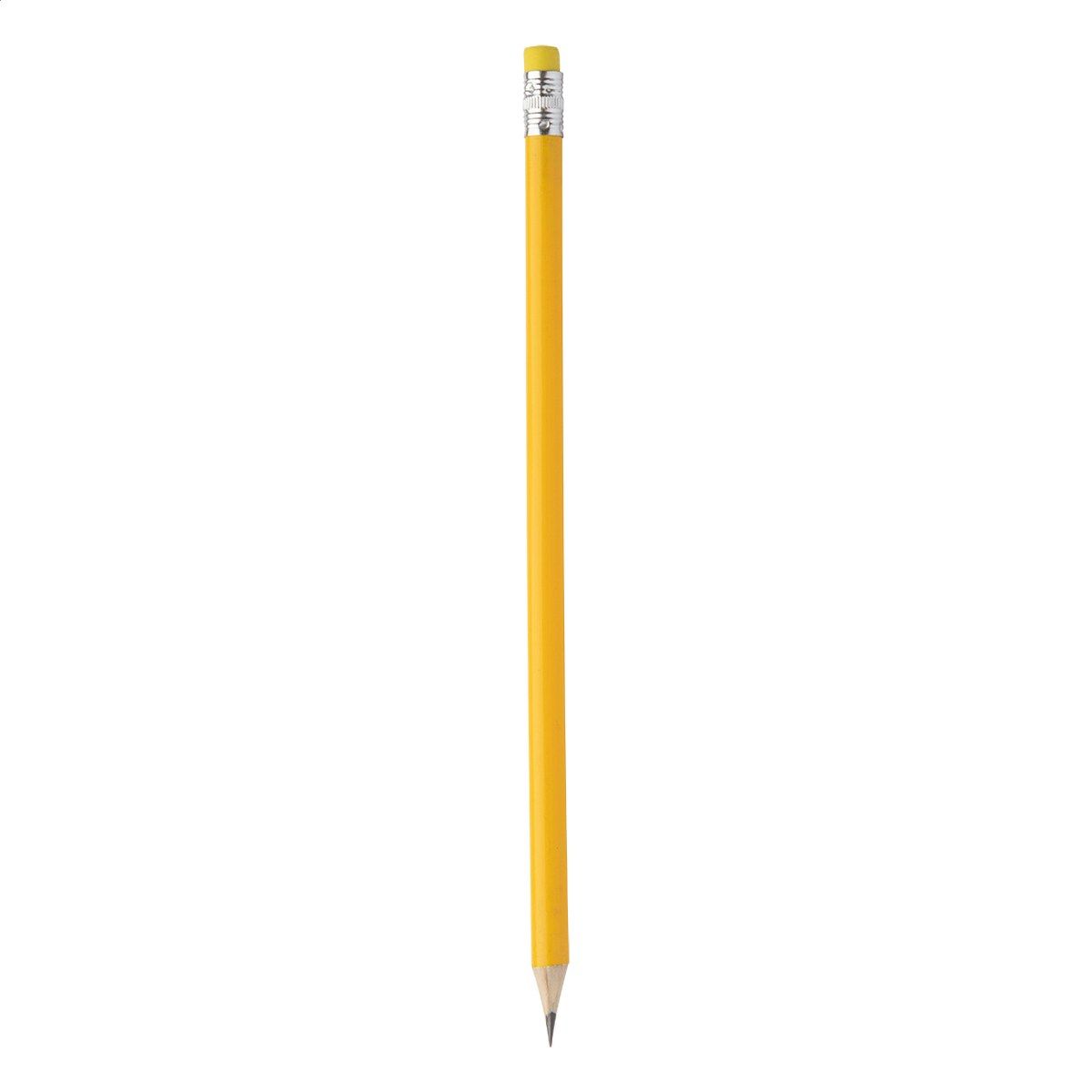 Dřevěná tužka se stejně barevnou gumou, ořezaná.