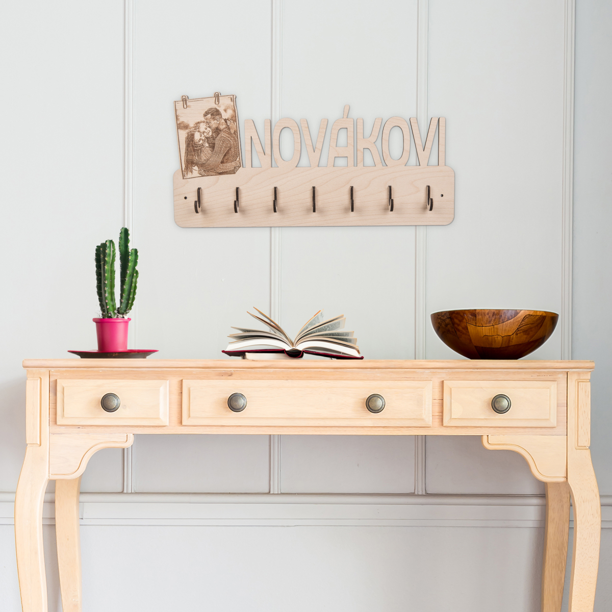 Dřevěný věšák na klíče s vlastním motivem - Rodina