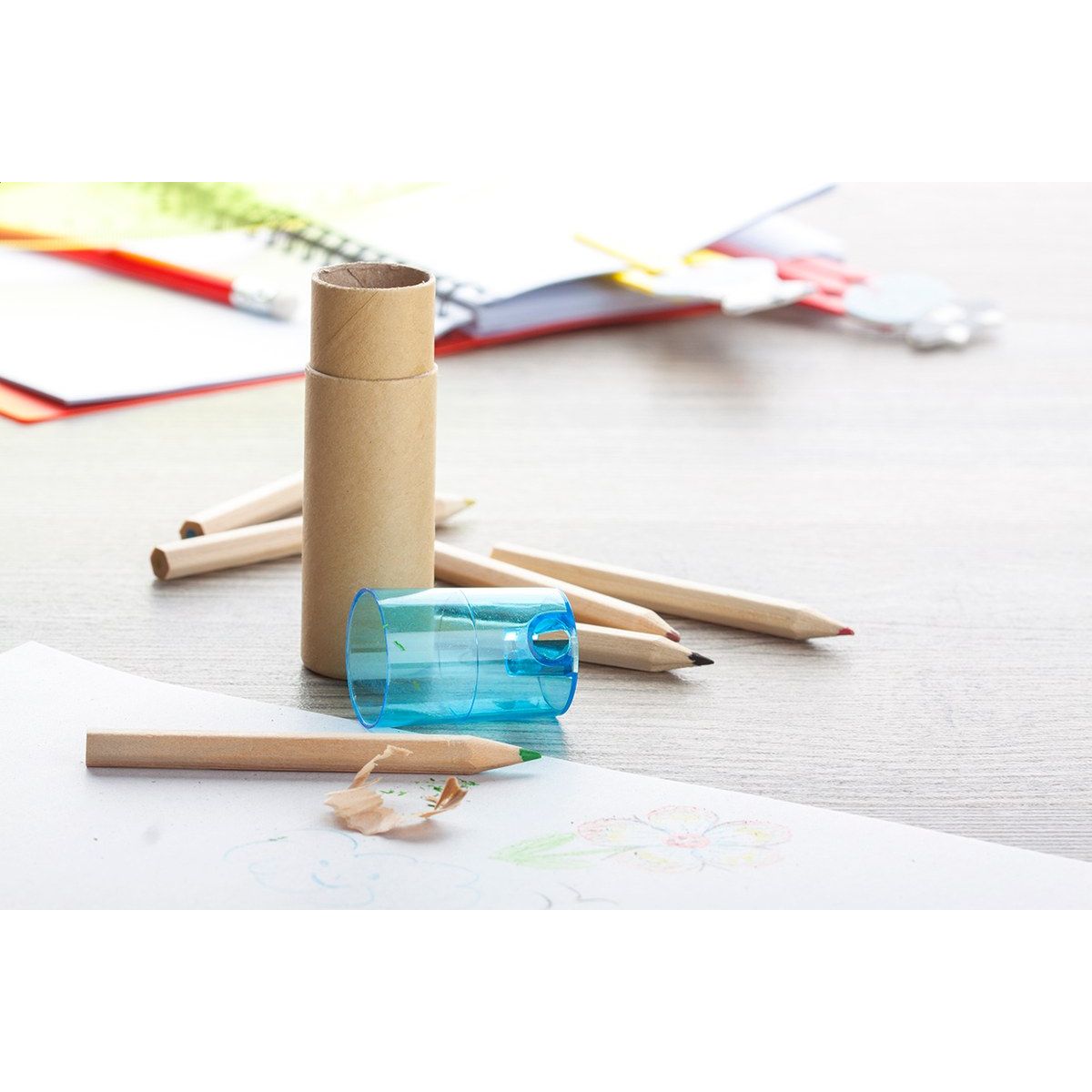 Sada 6ks barevných tužek s ořezávátkem v papírové krabičce.