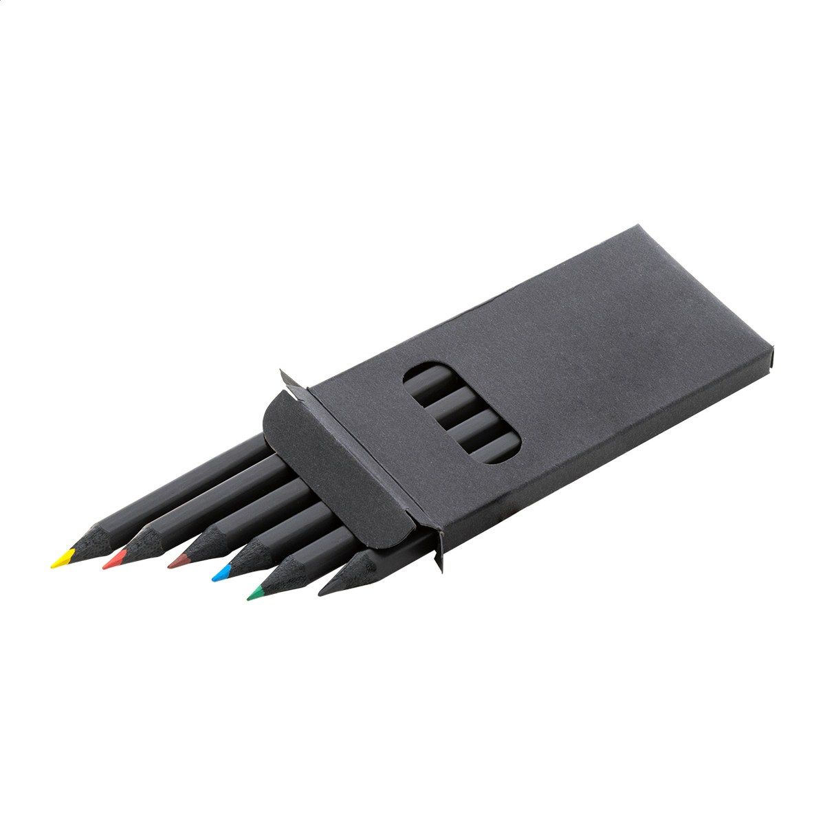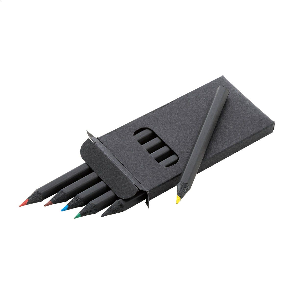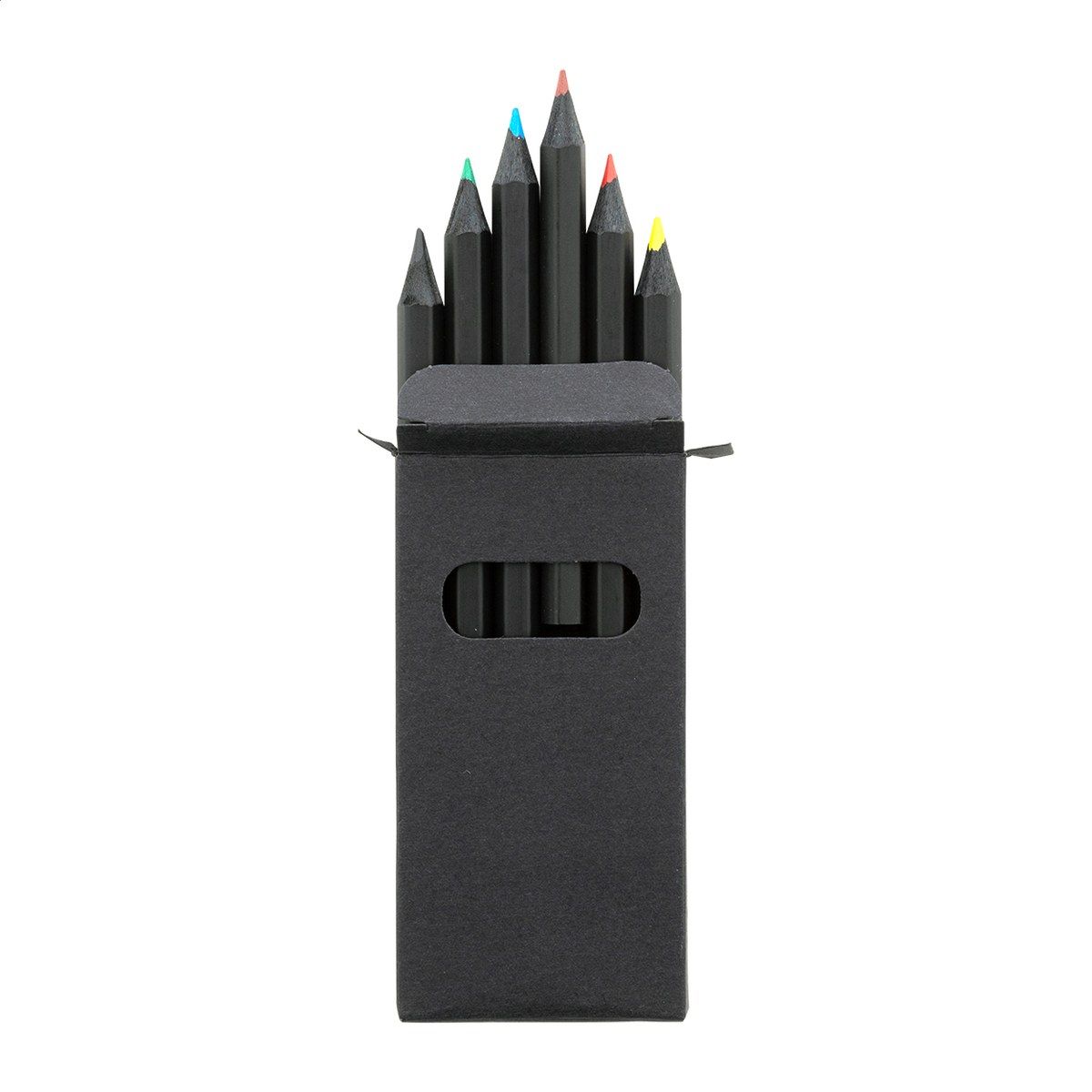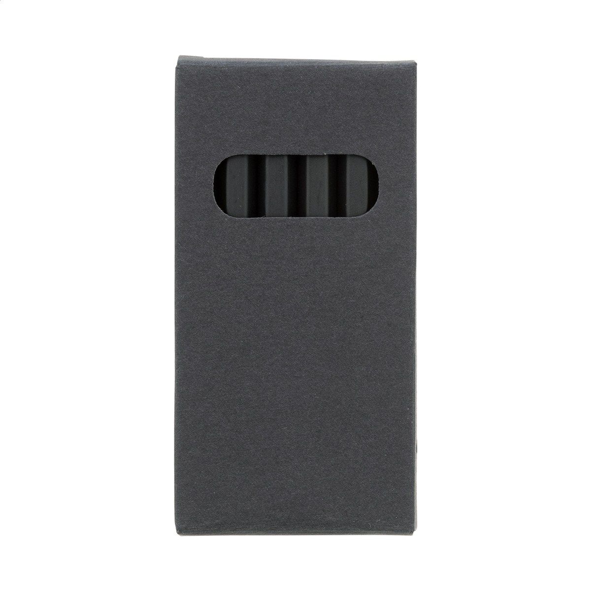 6dílná sada pastelek z černého dřeva v černé krabičce z papíru.