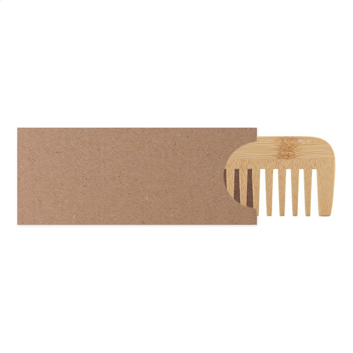 Bambusový hřeben v pouzdru z kraftového papíru.